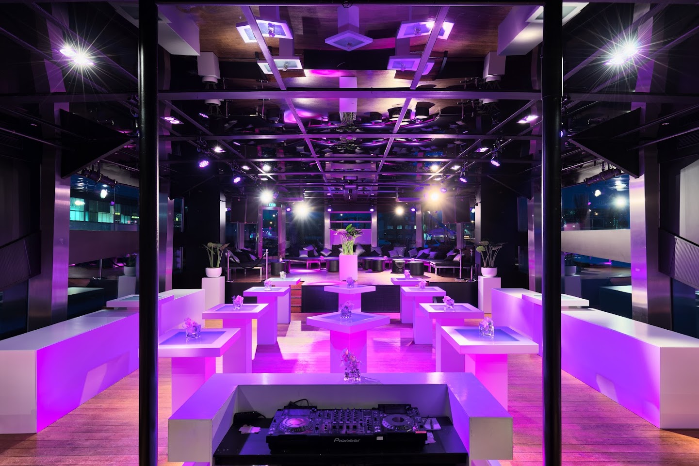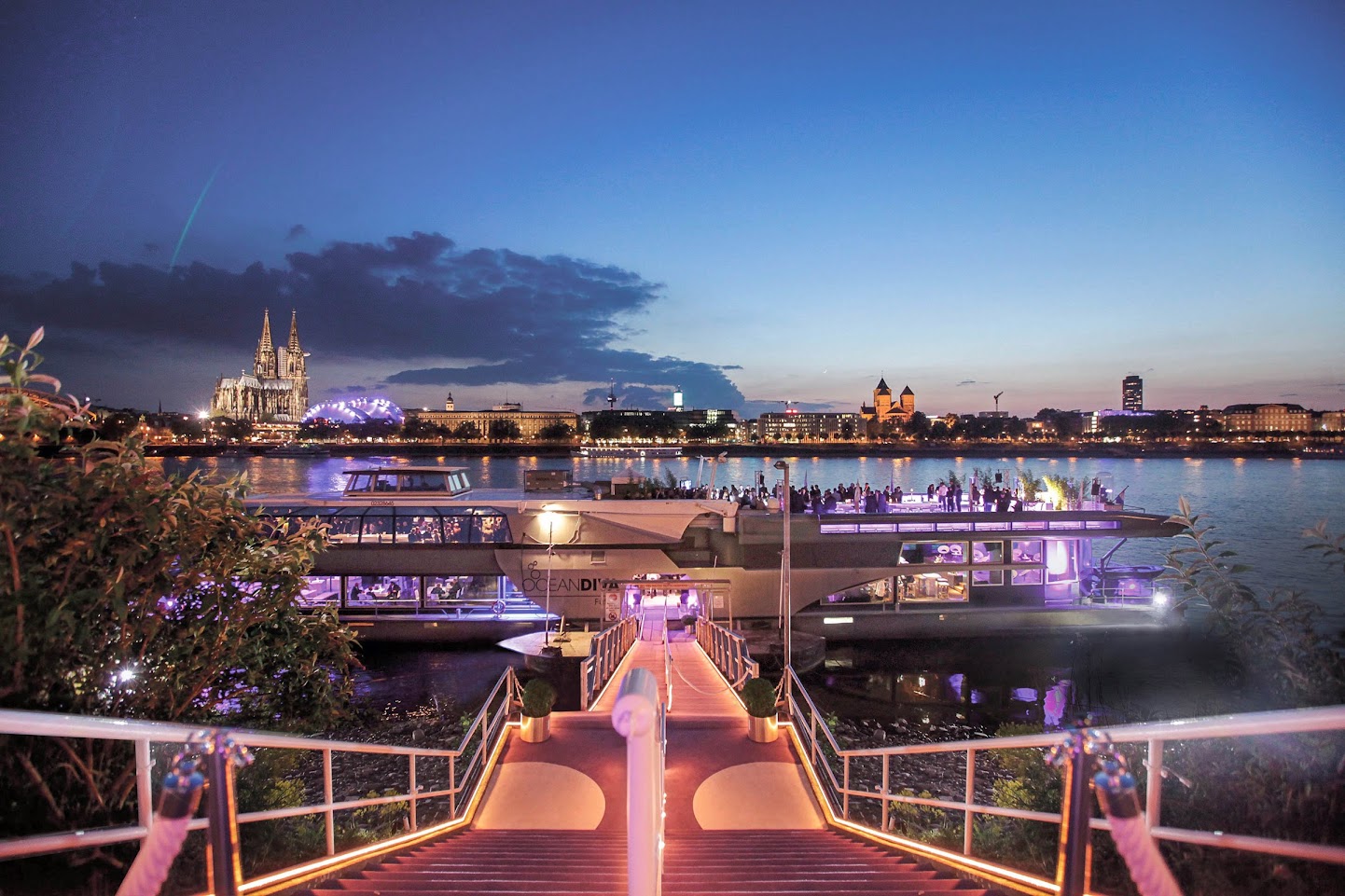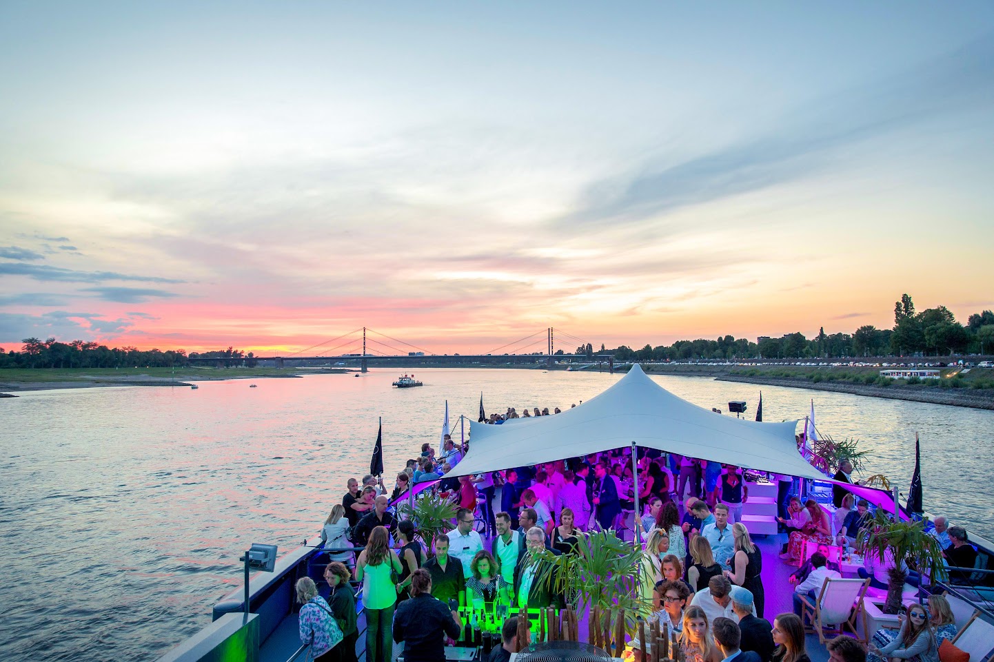 This extraordinary location offers a panorama view of Düsseldorf from the river Rhine.